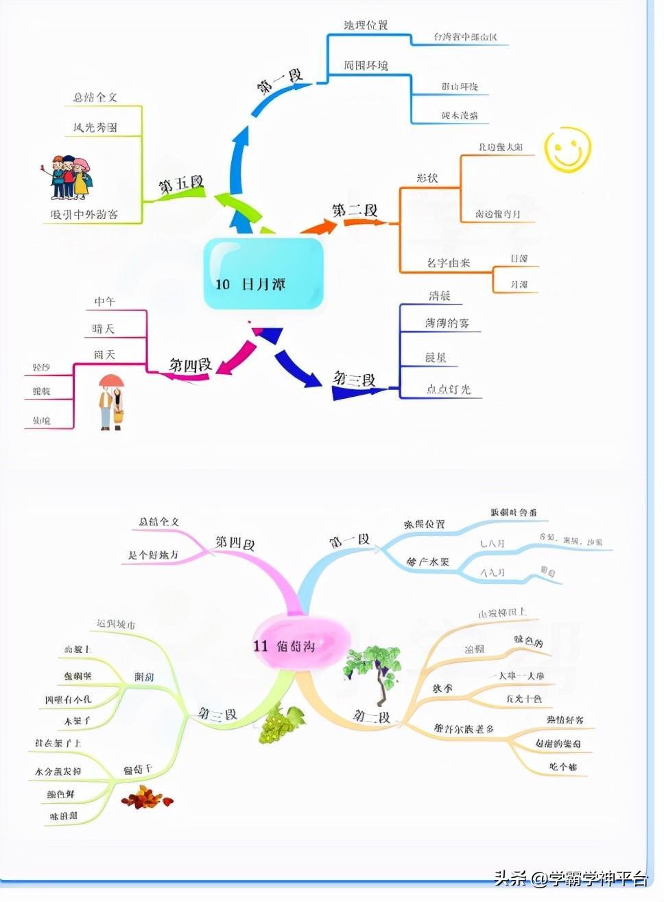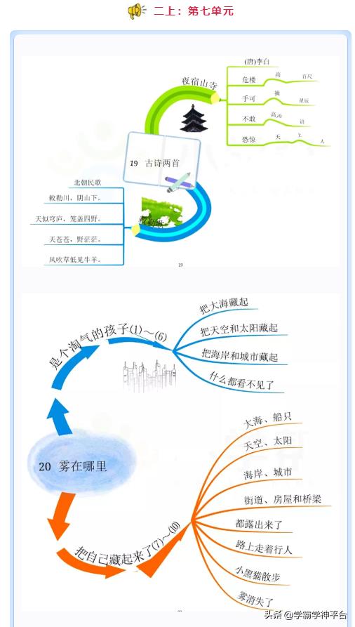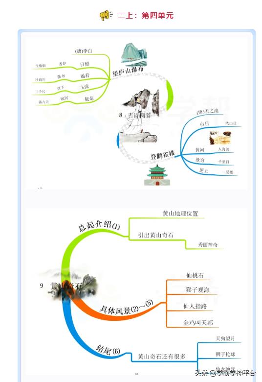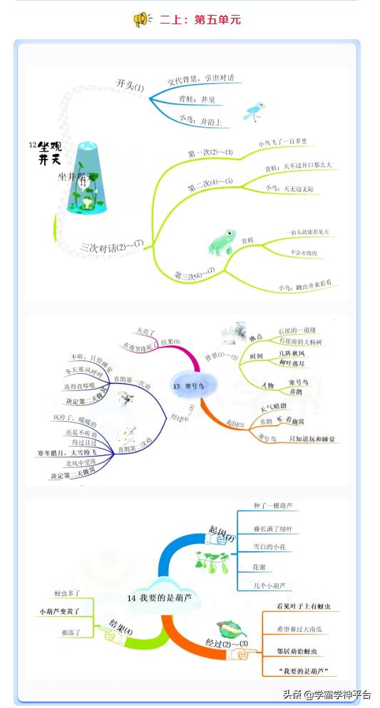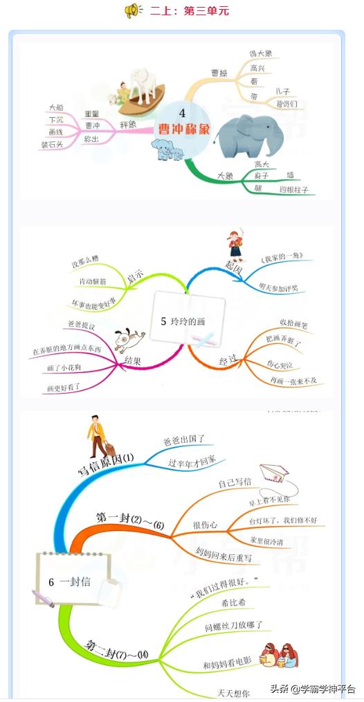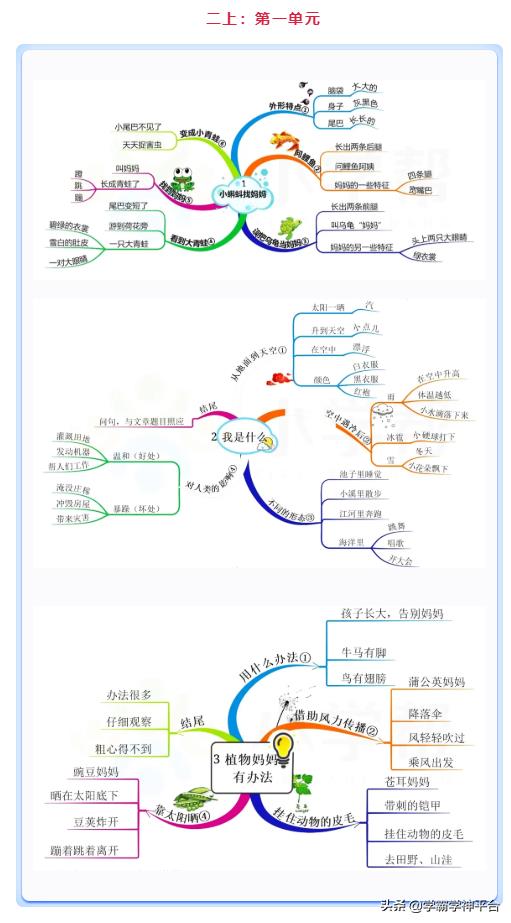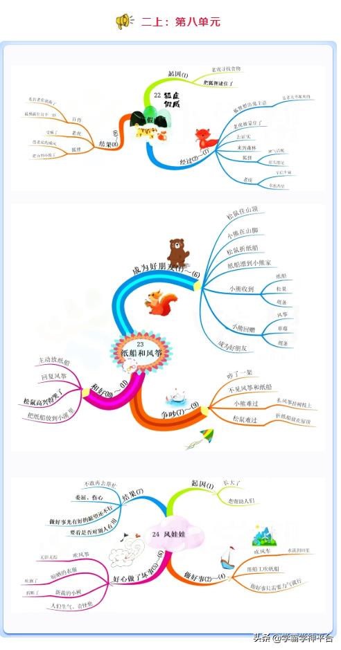 二年级上册全册思维导图,1-8单元每课构思,一目了然。