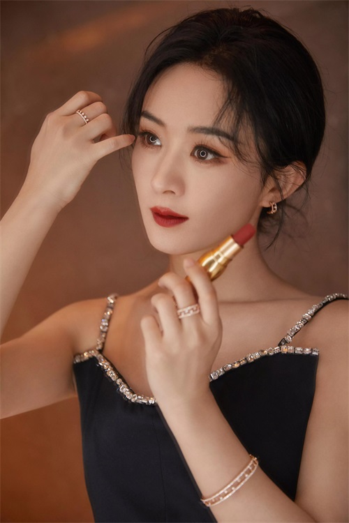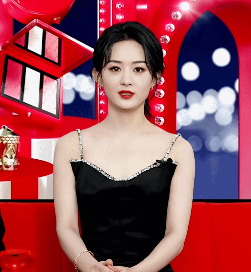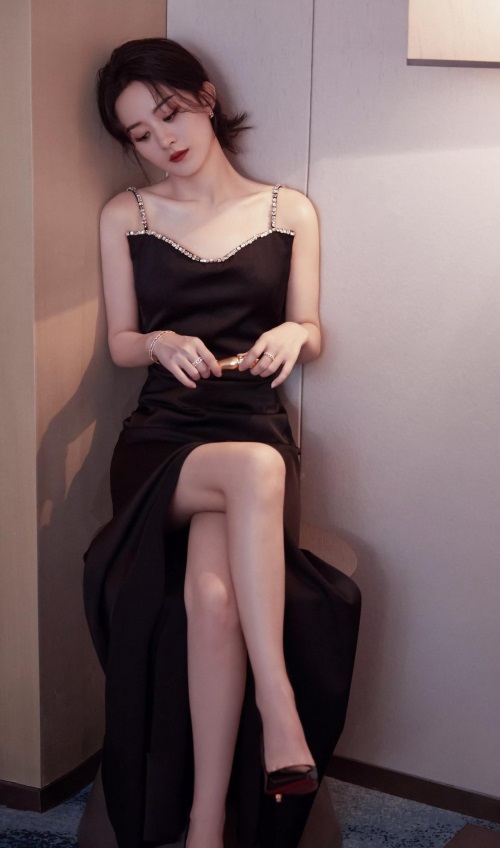 赵丽颖写真,一袭黑色吊带裙,精致优雅,美艳动人。