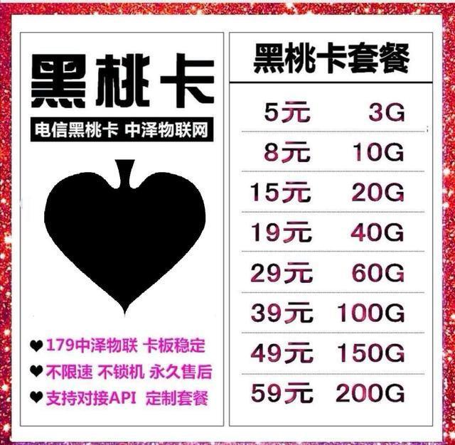 还有一款电信黑桃卡,可以订购5元包月,8元包月,15元包月,19元包月等等,这卡适合流量需求不大的用。