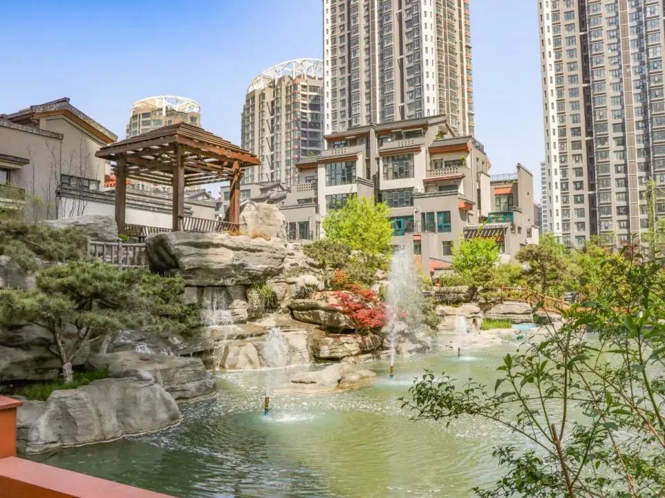 在社区内部园林间前行,富有中国传统文化意蕴的人文小品逐一映入眼帘。