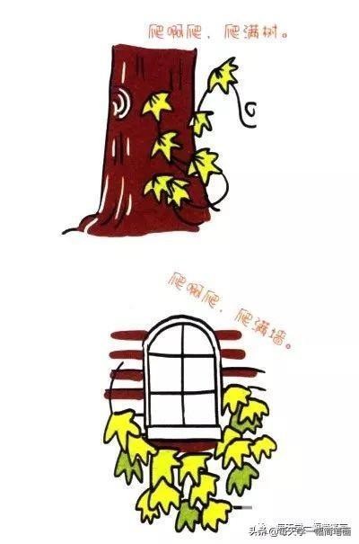 每天学一幅简笔画-四步画出爬山虎简笔画图片