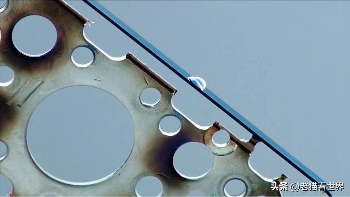 接着用激光钻孔机钻出手机按键孔位,焊上电路焊接点,再经过清水反复清洗干净,最后进行水滴微米测试,如果水滴沿着边框顺利滑落就说明是合格的,到这里一个手机背板框架就完美诞生了。