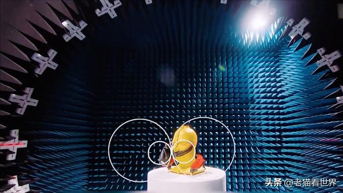 在信号测试实验室里,这些突起的石块其实是软软的海绵,它具有吸收电磁波的作用,以便手机精准接收信号。每个手机在出厂前都要经过这道检测。