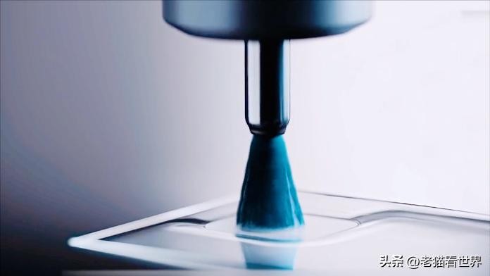 接着来到真空镀膜环节。在真空和高温的共同作用下,被蒸发的二氧化硅微粒会覆盖在盖板上,并形成一层薄膜,接着再喷洒上油墨,一块手机盖板就完成了。