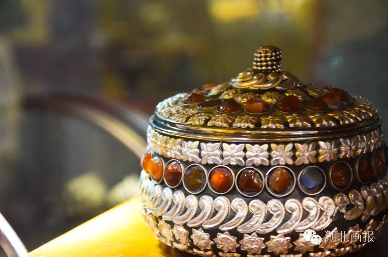 ▲藏族首饰盒,由一些老玛瑙和银质装饰而成