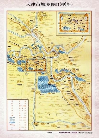 1846年天津城乡图,城南蓝色水洼就是城南洼
