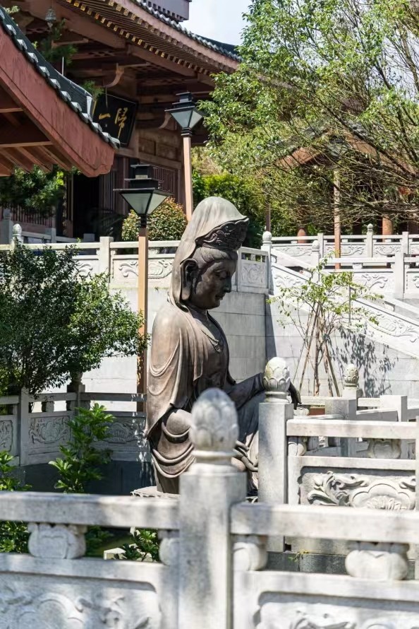 寺庙延续了中式寺庙建筑群风格,建筑多以灰、黑、青、朱红为主,给人以宁静、庄严的感觉。
