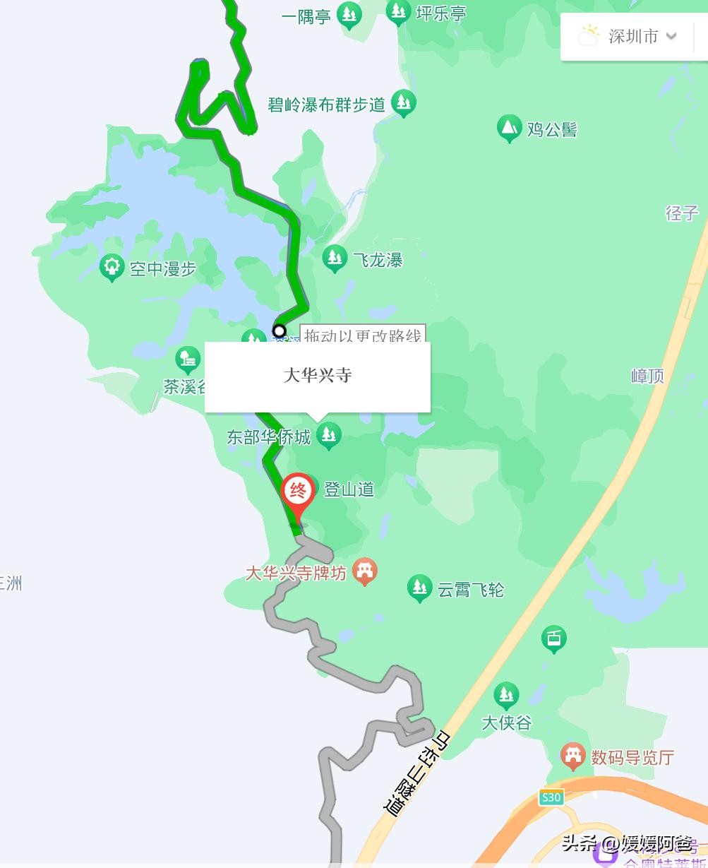 公交路线:1.“祈福专线”起自海山路总站,止于大华兴寺停车场站,单边里程16.4公里。