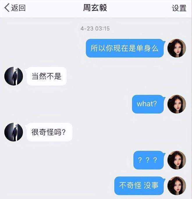 女网红说和周玄毅在社交平台上认识的,她很喜欢看周玄毅打辩论,于是在平台上留言,接着两个人就你来我往的聊起天来,甚至周玄毅还会与她开一些男女之间的玩笑话。