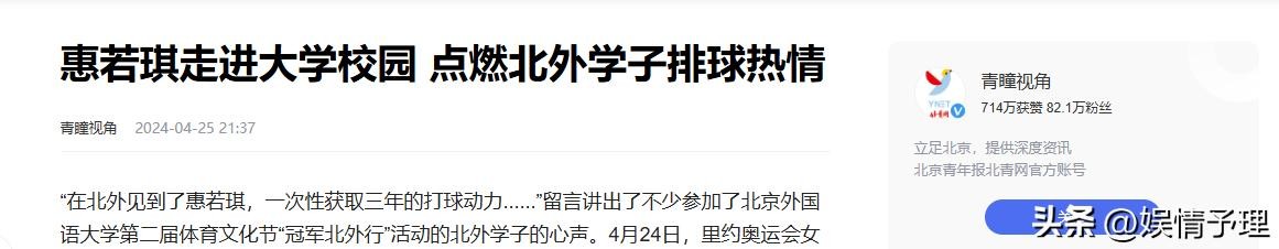 在比赛时,惠若琪经常全力以赴,带领女排队员勇争第一,拿下了多枚赛事金牌。