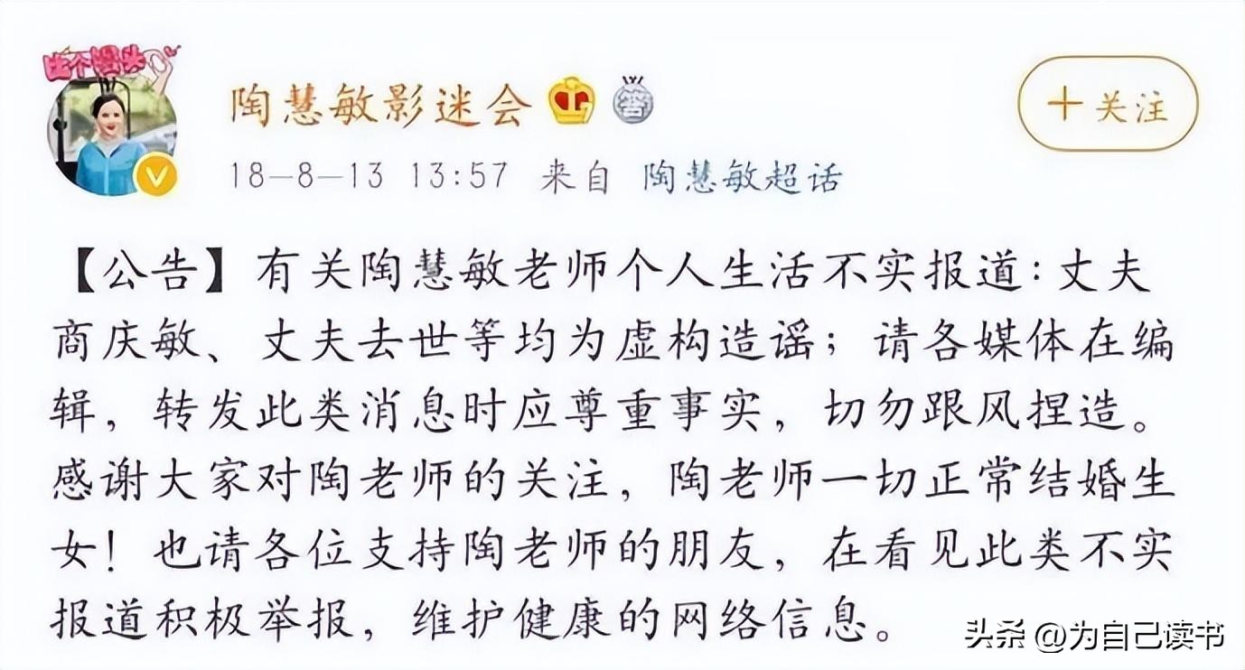 2020年,“陶慧敏守寡10年”的消息在网上疯传。