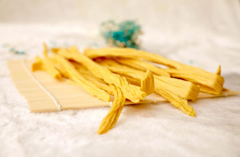 腐竹的制作工序比较复杂,购买过的朋友都知道,腐竹的外观都是一条条的,摸起来是干巴巴的。