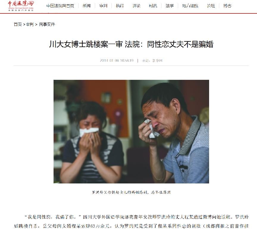 川大女博士跳楼案一审 法院:同性恋丈夫不是骗婚——中国法院网31岁女博士离奇坠楼,父母含泪曝出内幕:女婿有特...——澎湃新闻