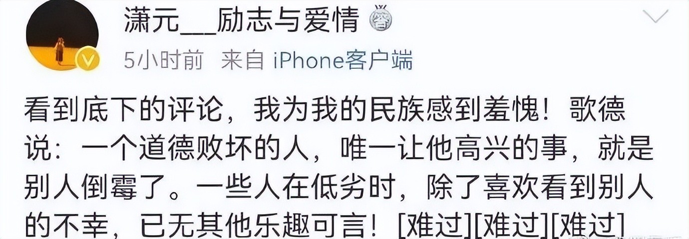 然而,在这些正常的情感表达中间,有一位认证为唐山女教授的微博账号“潇元___励志与爱情”发出了极不应该且十分刺耳的声音。