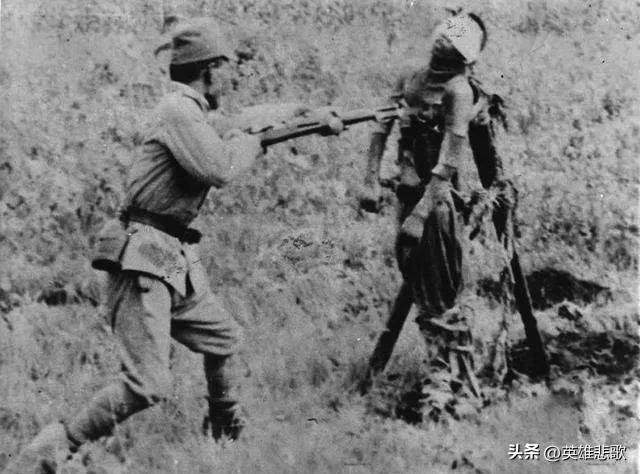 一个鬼子用三八大盖的刺刀刺杀中国人