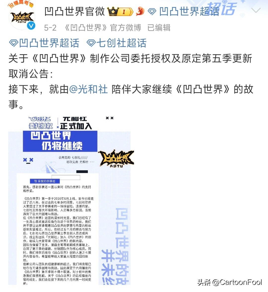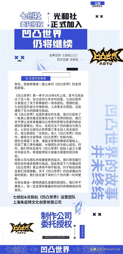 《凹凸世界》官方也是在6月28日发布了一则公告作了相关说明,具体如图,