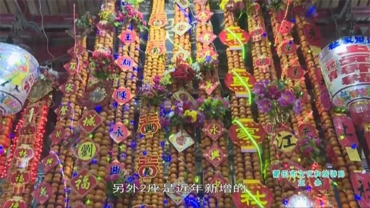 “桔塔”是全国独一无二的、起源于唐代的民间民俗工艺祭品,一直沿袭几百年。桔塔共计15座,其中13座是按照清代嘉庆年间,全村13社共同重修浦口宫时,以出资金额为依据,确定红桔塔的高度和红桔的个数,最高的直冲屋粱,令人叹为观止。另外2座是近年新增的。
