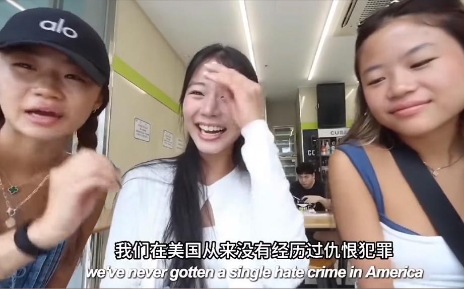 三姐妹很震惊地表示自己刚刚经历了亚洲人对亚洲人的仇恨犯罪,也就是种族歧视,这种歧视是她们在美国长这么大都从来没有经历过的。