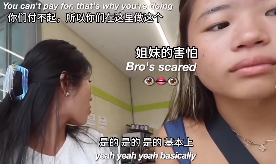 大妈的话真是让人摸不着头脑,这里不是公共场合吗?为什么就不能待在这里呢?这句询问又换来了大妈的嘲讽,她说是因为三姐妹付不起餐饭钱,所以才要在这种公共场合拍视频的。