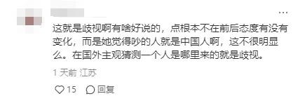 还有网友表示这就是在歧视,这位韩国大妈前后的态度没有什么太大的变化,她一开始就觉得在大吵的人是中国人所以才过去骂的,而且在国外主观猜测一个人是从哪里来的这就是歧视。