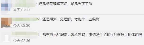 网友:互相理解,都是为了工作