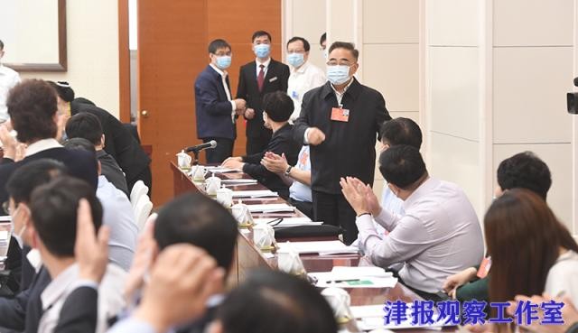 5月21日,十三届全国人大三次会议天津代表团召开会议前,当中国工程院院士、天津中医药大学校长张伯礼代表进入会场时,在场的所有代表不约而同热烈鼓掌,向这位年逾古稀、在武汉奋战82天的抗疫英雄表达由衷敬意。