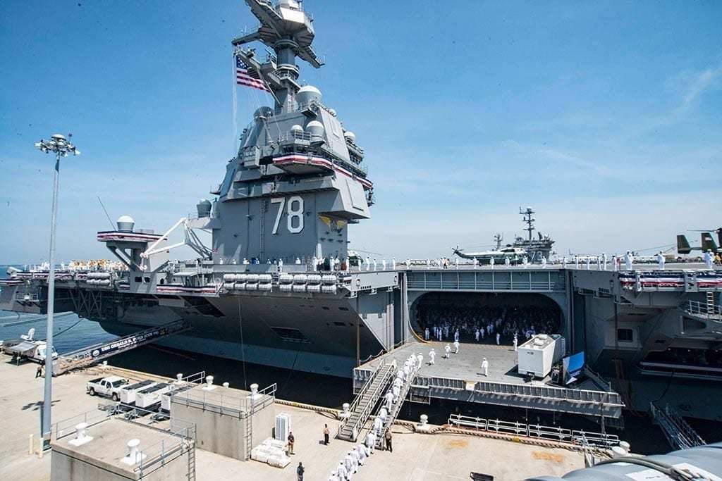 此外,福特级航母还配备了两艘弗吉尼亚级攻击核潜艇、一艘黄蜂级两栖攻击舰、两艘提康德罗加级导弹巡洋舰和六艘阿利伯克级导弹驱逐舰。