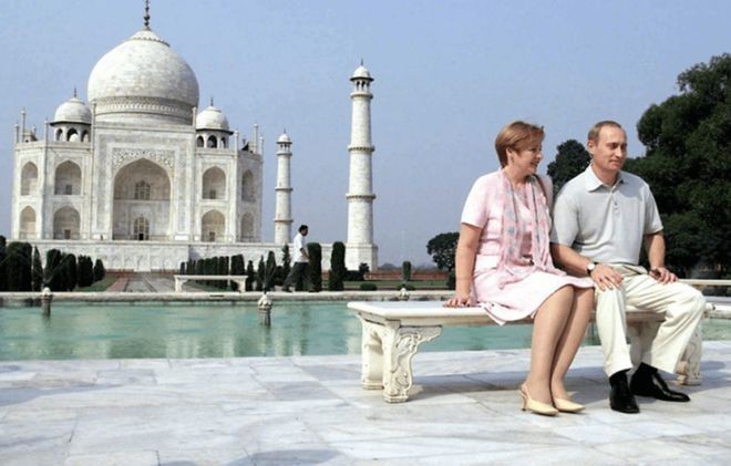 2000年,俄罗斯总统普京和妻子柳德米拉便在泰姬陵留下恩爱合照,一身粉色套装的第一夫人,身材不足,却拥有总统全部的爱,本身就是一种浪漫吧?