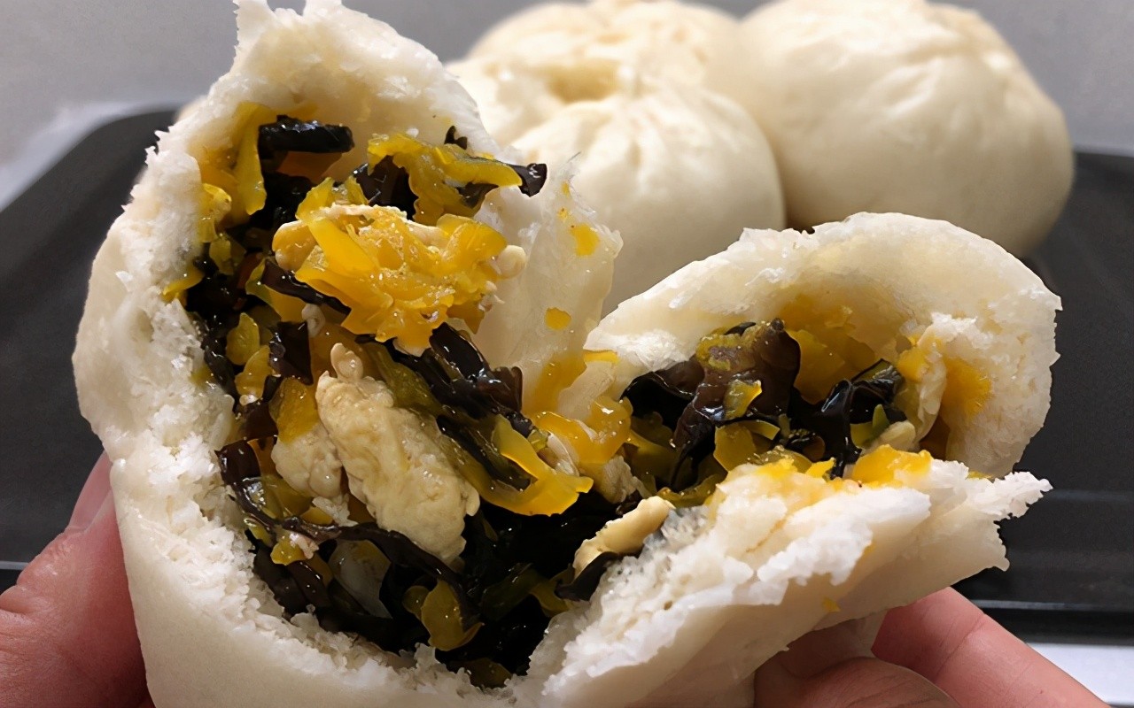 冬季爱上蒸包子,试试这笼南瓜馅儿的包子,咸甜适口,白胖不塌陷