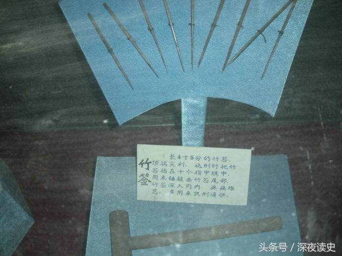 竹签,顶端尖尖的,用于将其插入犯人的指甲缝中,使人痛苦异常。而现如今,竹签大多用于撸串了。