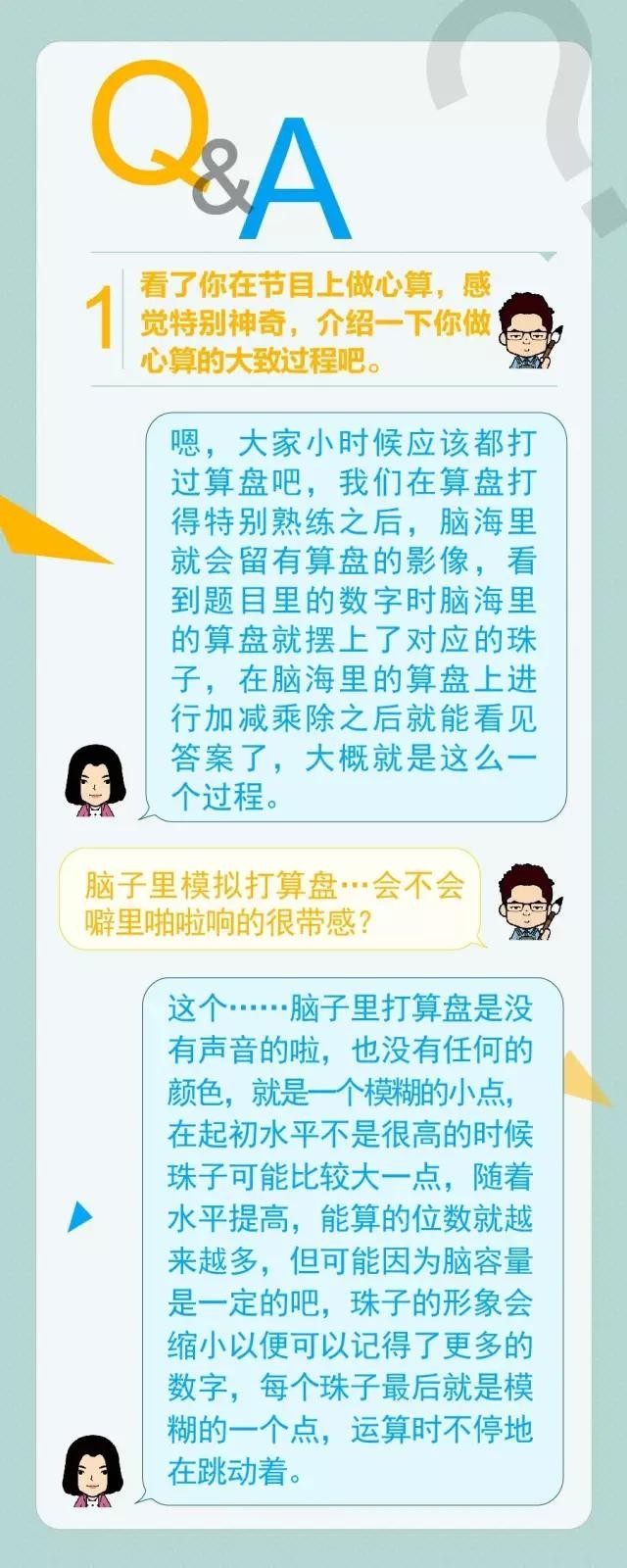 她不用一张纸、一支笔,15个六至十位的数字组成的加减题,扫一眼,不到9秒就可以准确报出答案。