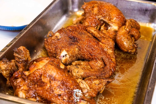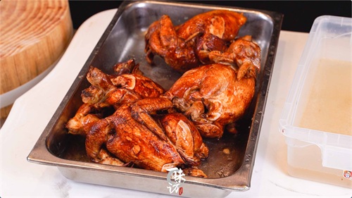 裹糖上色的童子鸡放一旁备用,沥干水分。