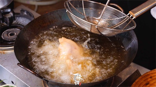 主要就是把童子鸡炸熟炸颜色上色就可以,这个可以慢慢炸也不需要炸非常熟透,稍微看到鸡肉表皮金黄就可以。