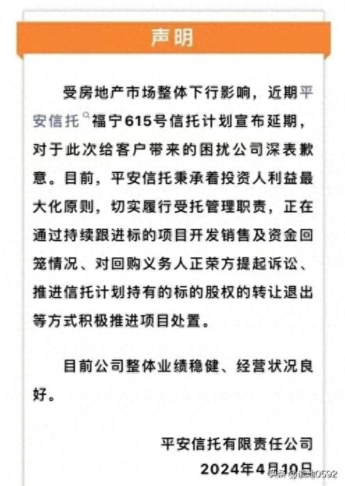 所以啊,买了这笔信托的人就这样把不明不白的把钱投到了厦门马銮湾的一处楼盘,再经历开发商暴雷和销售惨淡后,别说回报了,想拿回自己的本金都遥不可及,除非平安拿出担当自己填这个窟窿。对于吃瓜群众,也不要觉得买信托的都是有钱人就开心吃瓜,不管你有没有意识到,如果这一轮长长的地产下行仍迟迟不能见底回升的话,绝大多数人最终都将被裹挟其中……