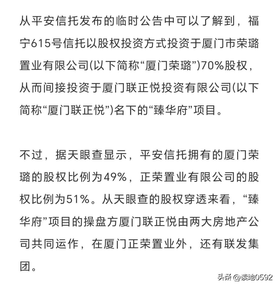 平安信托的瓜,最后掉到了厦门“联发正荣臻华府”头上
