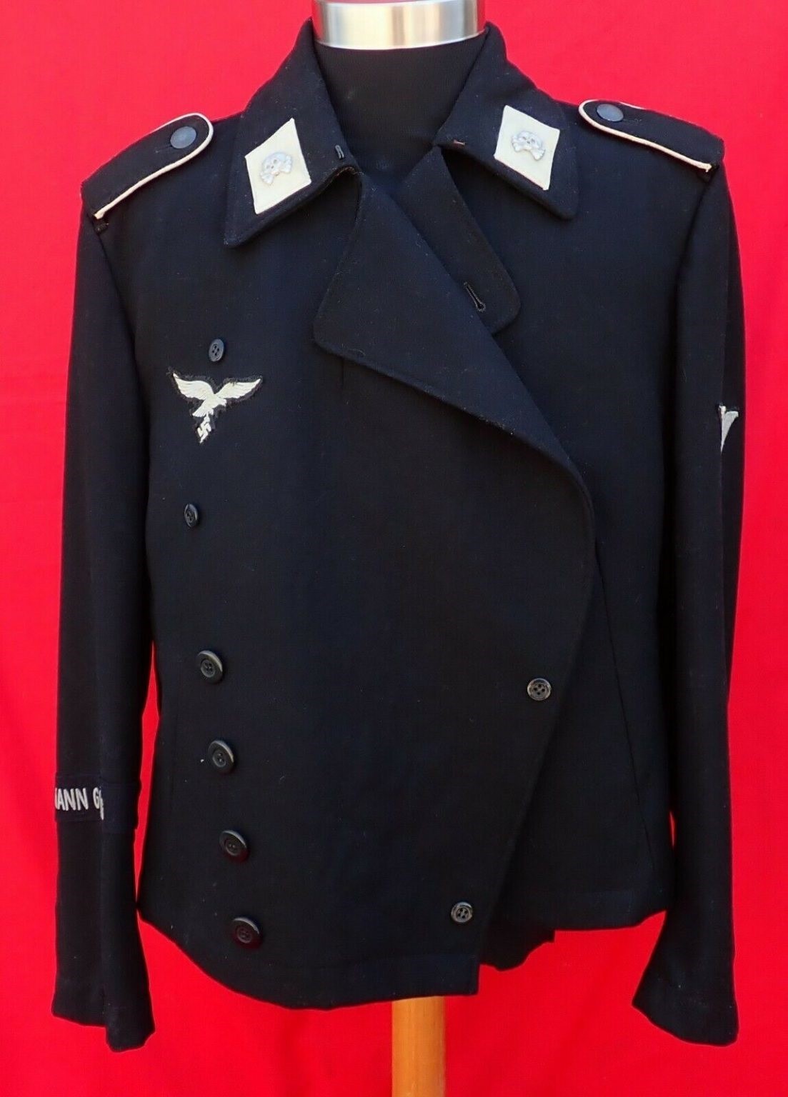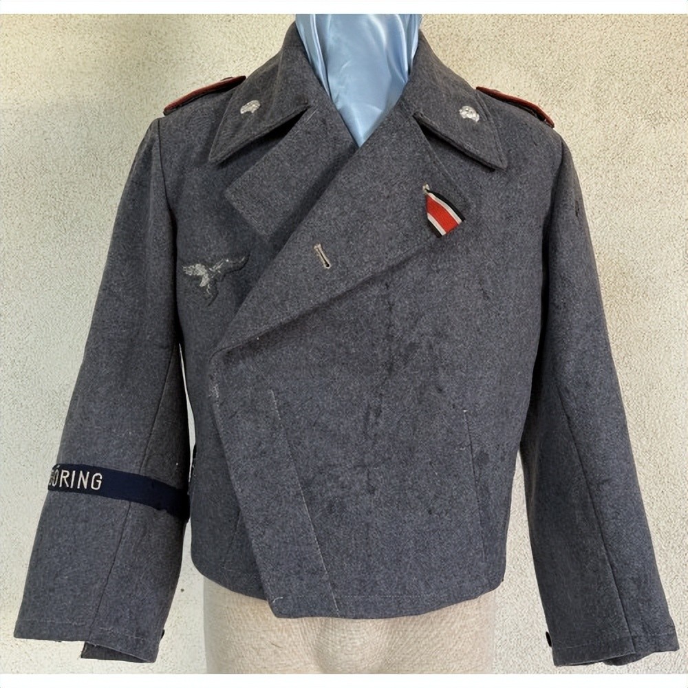 戈林装甲师的黑色装甲兵制服和陆军样式一样,是从陆军被服仓库中直接领取使用的。黑色装甲兵制服由黑色羊毛制成的短腰夹克,双排扣,大翻领,前襟上面两枚纽扣平时打开,作为翻领样式,天冷时可以扣上。左胸口为空军鹰徽,机绣在底布上,最初为蓝灰色,后改为黑色。军官的衣领为银绳镶边,军士和士兵为白绳镶边。