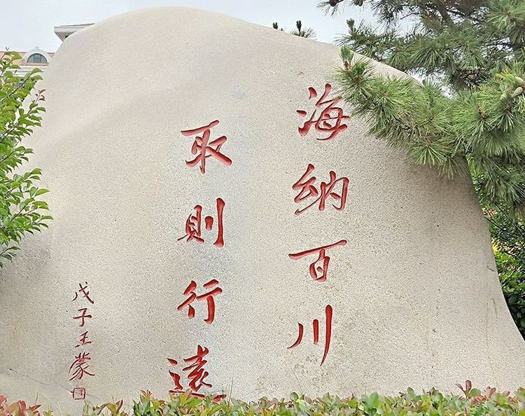 海纳百川,取则行远——中国海洋大学 青岛 作家王蒙受聘中国海洋大学文学院院长时提出的。