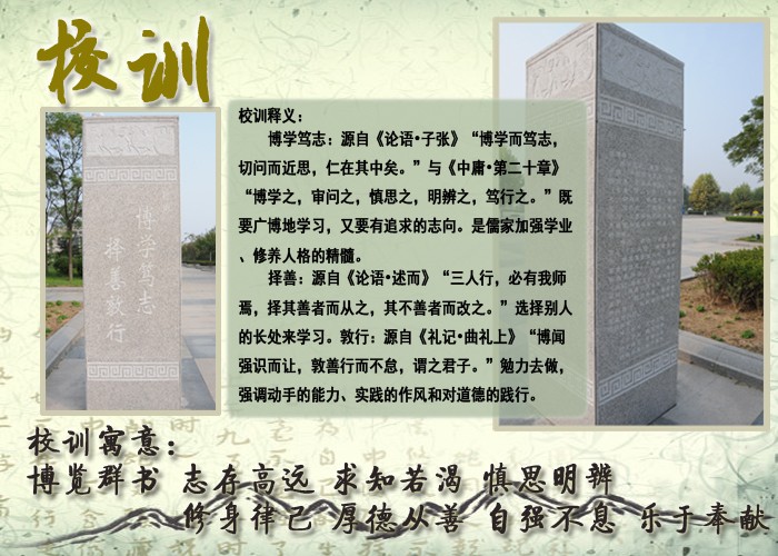 兼爱、尚贤、博物、戴行——枣庄学院 枣庄 出自《墨子》。