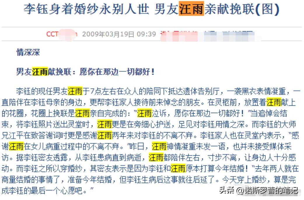 李钰葬礼那天,汪雨以男朋友的身份亲手操办她的后事。自此之后,汪雨再也没有传出桃色新闻。