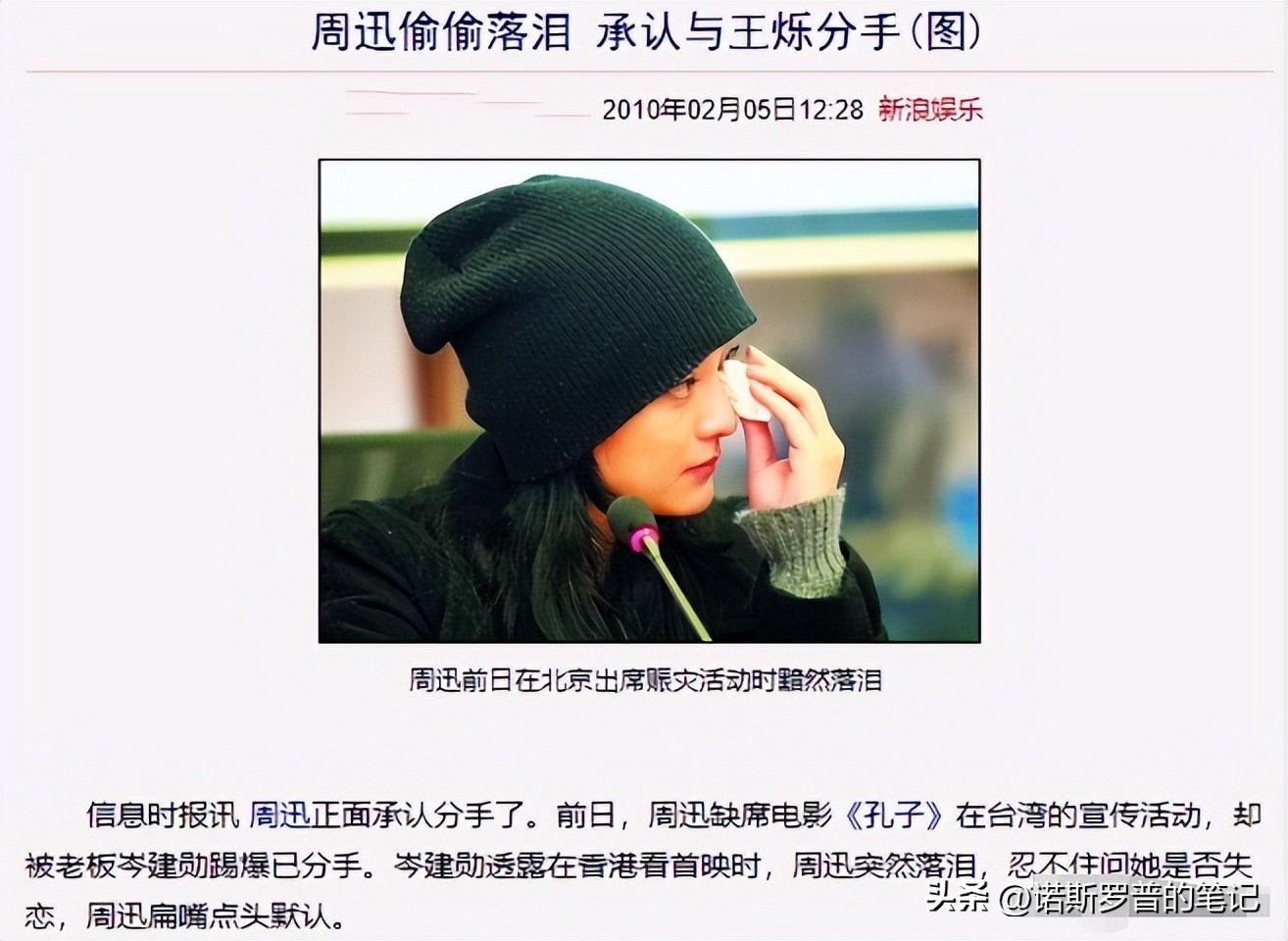 虽然当时的爱情轰轰烈烈,但两人并没有修成正果,2010年,周迅在出席活动的时候泪洒现场,承认与王烁分手。