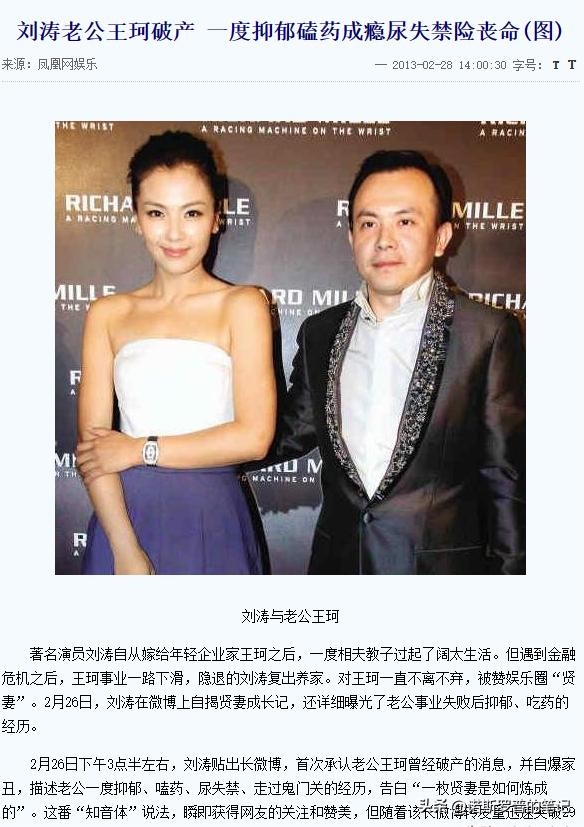 那时,刘涛的富太太生活才过了一年,王珂就因为投资失败而宣告破产,甚至欠下了上亿元的债务。