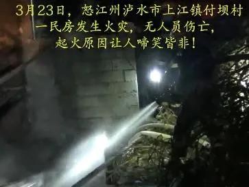 3月23日,怒江州泸水市上江镇付坝村一居民房发生火灾,消防员到达现场后,立即铺设水带展开扑救,半小时后,现场明火全部扑灭,所幸没有人员伤亡。据了解,该男子在查看母鸡是否下蛋时,随手将一支还未熄灭的烟头扔进鸡窝而引起的火灾。