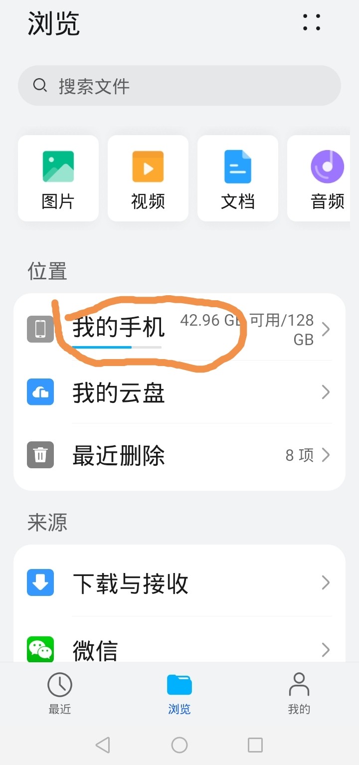 打开“文件管理”后,可以看到有一个“我的手机”。
