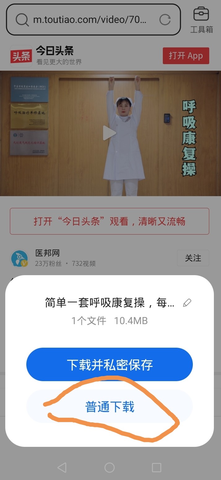 我们一般选 “普通下载”。视频进入下载过程。文件不大的话,一会功夫就下载到我们的手机里了。