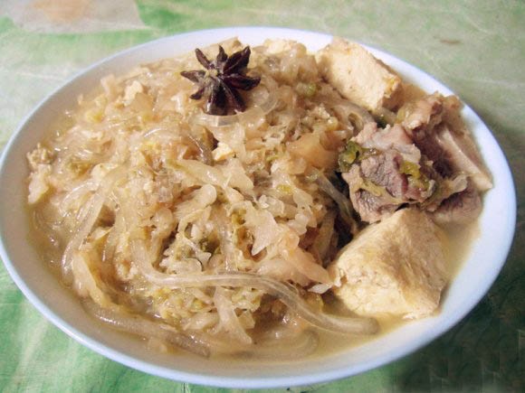 此菜是东北常见的家常菜,味道咸香,肉香渗人冻豆腐的空间之中,不腻。汤汁包裹白菜,深入豆腐,香啊!