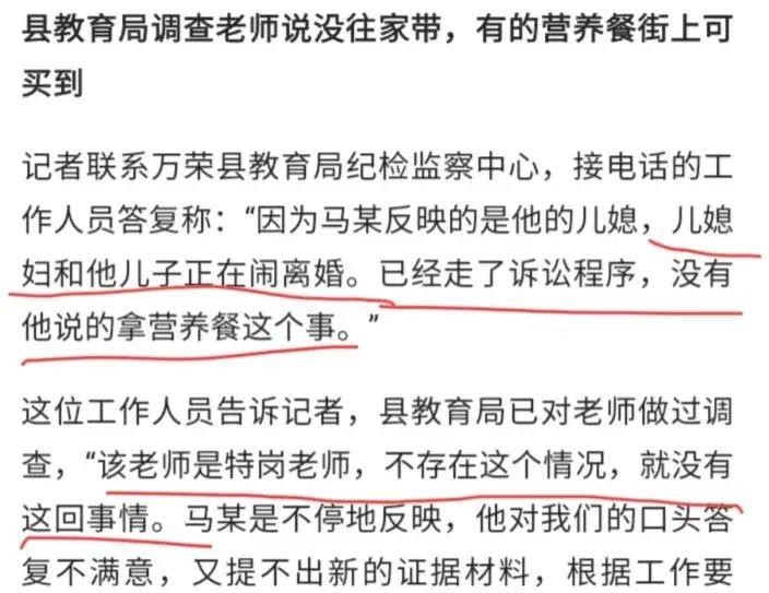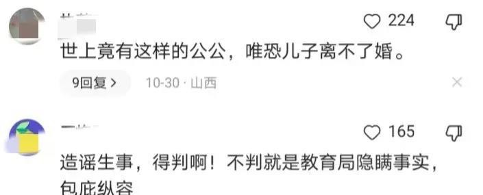 记者了解到,这位马先生不仅在网络上实名举报她的儿媳,还现场去了教育局负责人的办公室,这完全是“一心想把儿媳往火坑里推呀!”。这样的局面,也不禁让人产生疑问。当地教育局表示已经调查清楚,马先生的举报毫无事实根据。