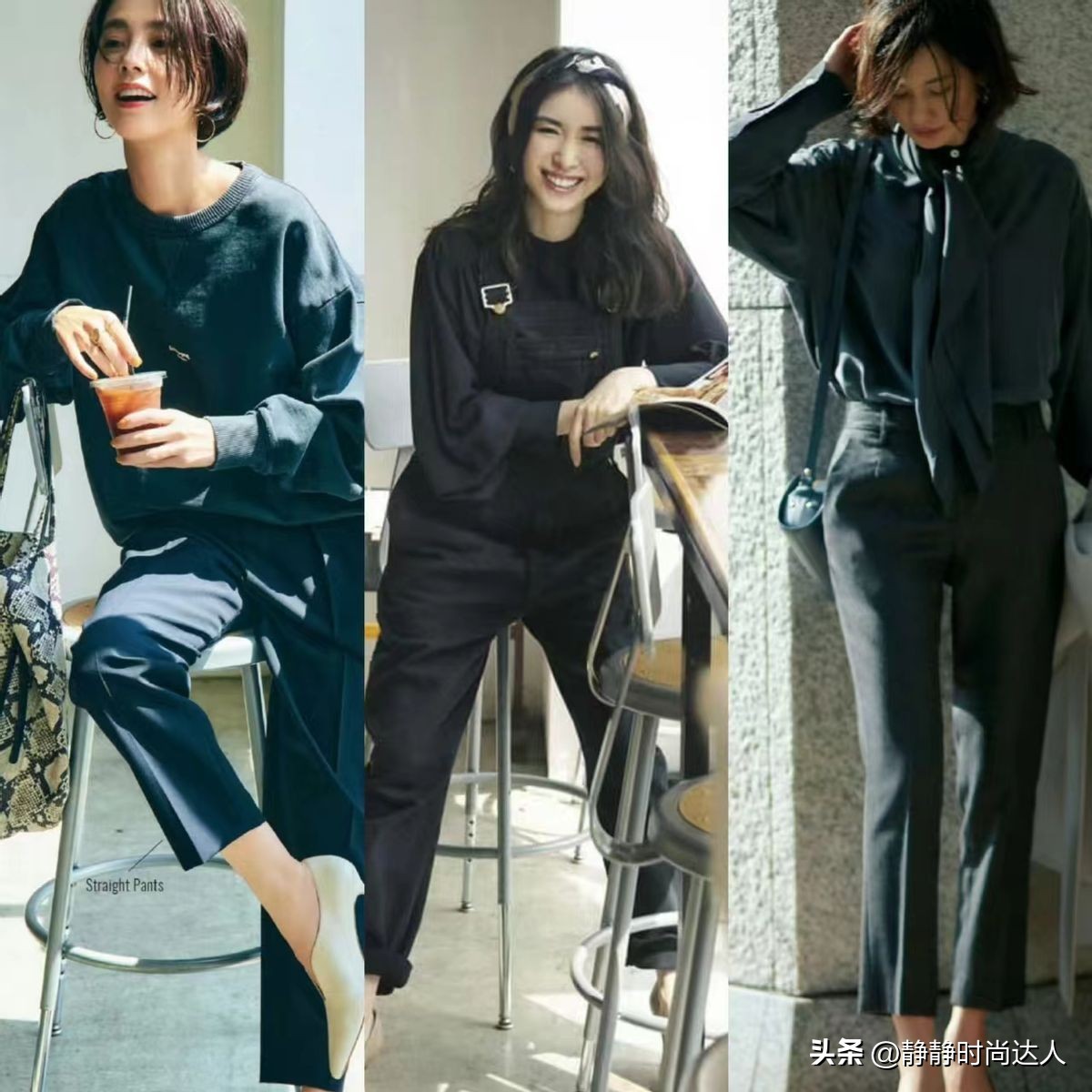 可以借助一件黑色上衣搭配深色长裤,用这种顺色搭配的方式,让画面变得更加的简约。