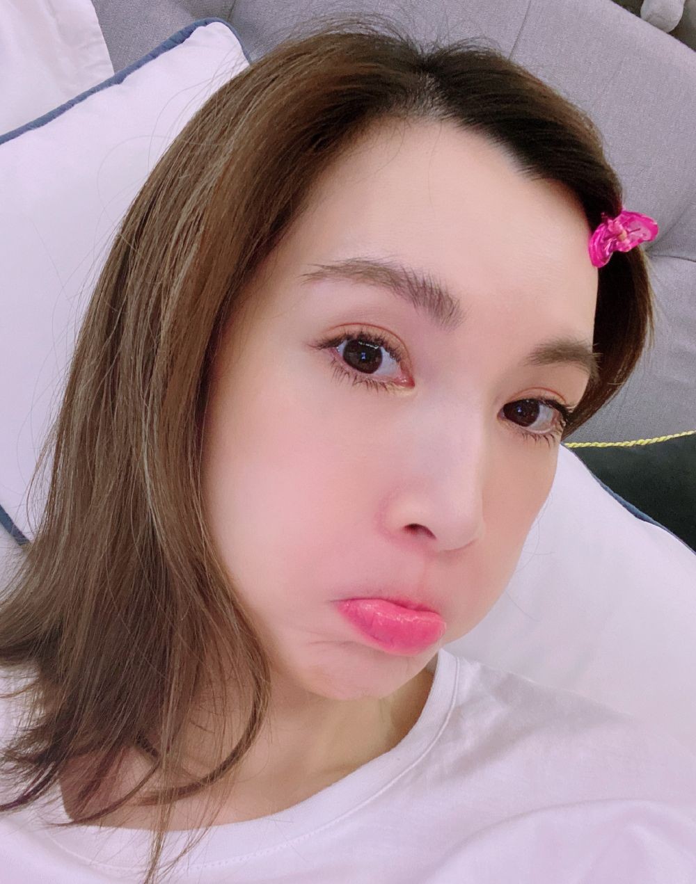 3月25日陈若仪也在社交平台晒出了两张自拍照,询问大家关于护肤品和化妆品最想看自己分享哪一样。照片里陈若仪化着粉粉嫩嫩的眼影,头上夹着粉色的发卡,完美的驾驭住了死亡芭比粉的口红,看起来少女感十足。