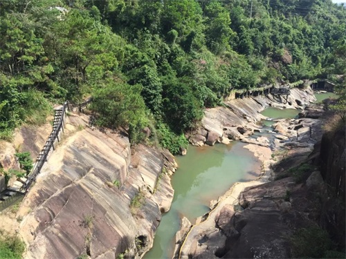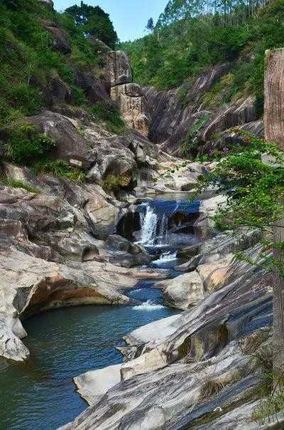 青岚峡谷晶洞花岗岩地貌与流水侵蚀地貌,构成了以“石臼壶穴群”为古地质遗迹。