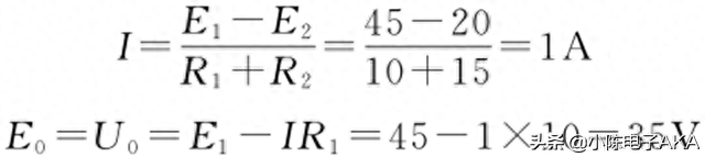 如例图所示电路,已知E1=45V,E2=20V,R1=10Ω,R2=15Ω,R3=64Ω,试用戴维宁定理求解流过R3的电流。